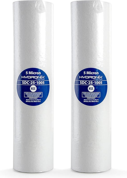 Original price $16.99 - Original price $16.99Original price$16.99$16.99 - $16.99Current price $16.99| /In stockThis pack includes two high-quality Hydronix SDC-25-1005 sediment filters for RO and whole-house systems. Each cartridge offers 5-micron filtration...