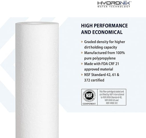 Original price $25.99 - Original price $25.99Original price$25.99$25.99 - $25.99Current price $25.99| /In stockThe Hydronix UDF-10KDF.5 combines premium activated carbon with ½ lb of KDF media for advanced filtration. It removes chlorine, bad tastes, and odo...